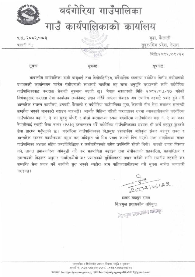 बर्दगाेरिया गाउँपालिकाकाे आधिकारिक फेसबुक पेज