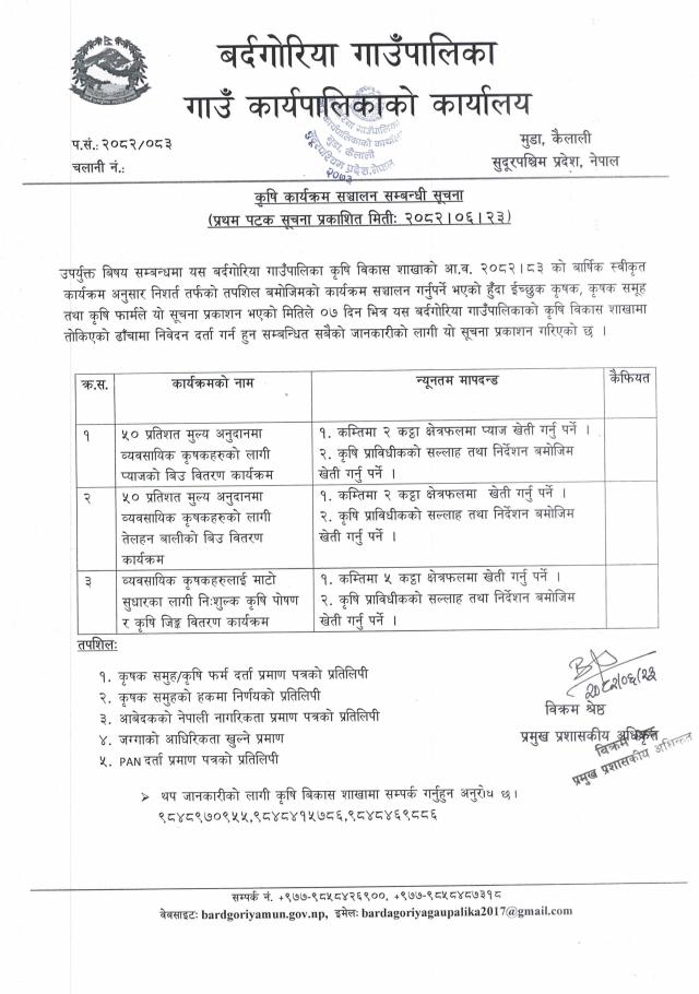 » कृषि कार्यक्रम सञ्चालन सम्बन्धी सूचना ।
