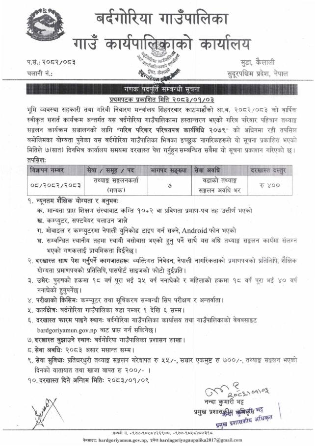 बर्दगाेरिया गाउँपालिकाकाे आधिकारिक फेसबुक पेज