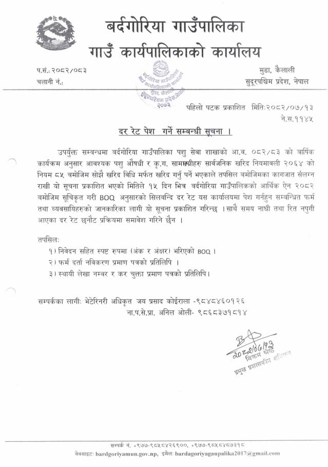 दर रेट पेश गर्ने सम्बन्धी सूचना।