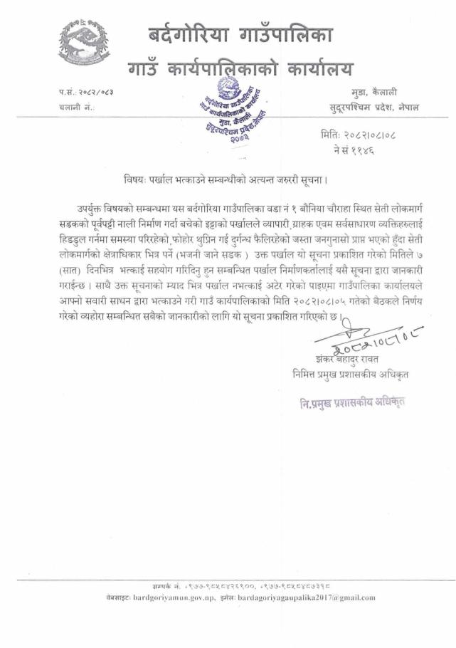 पर्खाल भत्काउने सम्बन्धी अत्यन्त जरुरी सूचना।