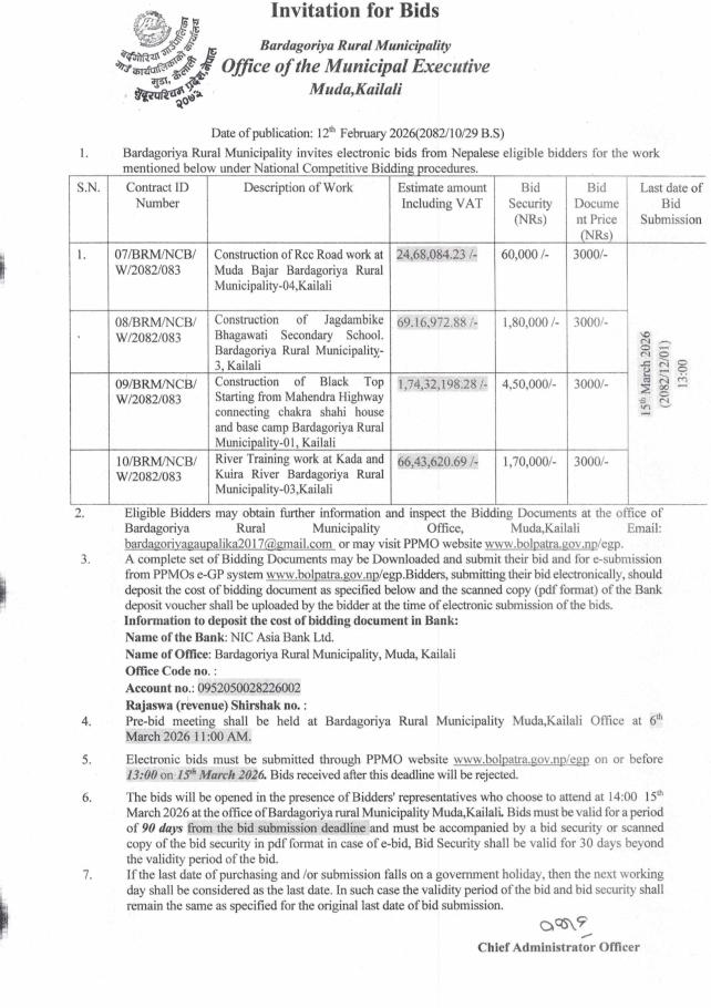 » बोलपत्र आह्वान सम्बन्धी सूचना।