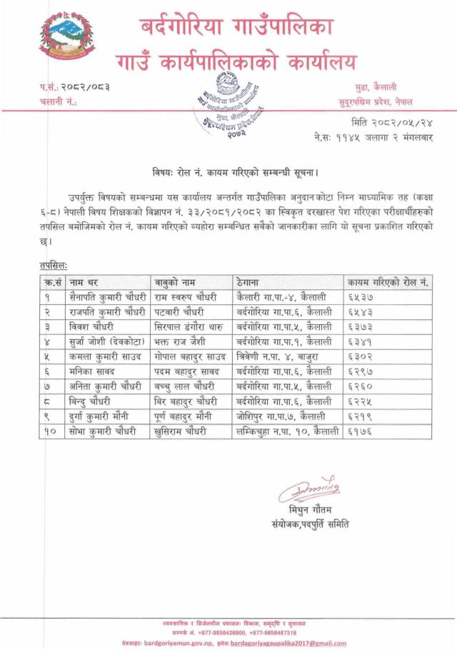 बर्दगाेरिया गाउँपालिकाकाे आधिकारिक फेसबुक पेज