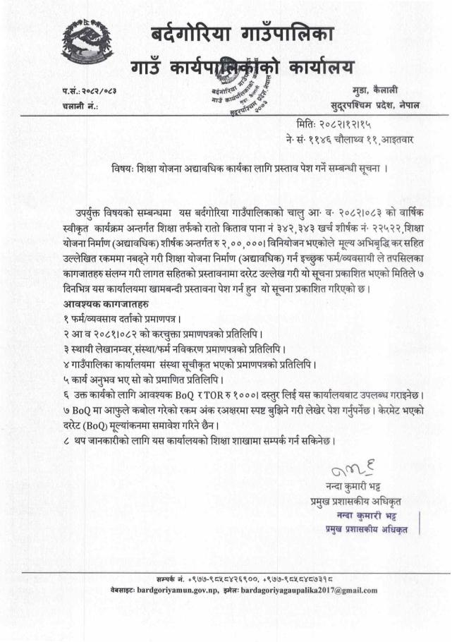 शिक्षा योजना अध्यावधिक कार्यका लागि प्रस्ताव पेश गर्ने सम्बन्धी सूचना।