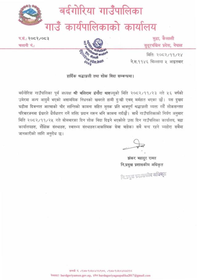 बर्दगाेरिया गाउँपालिकाकाे आधिकारिक फेसबुक पेज