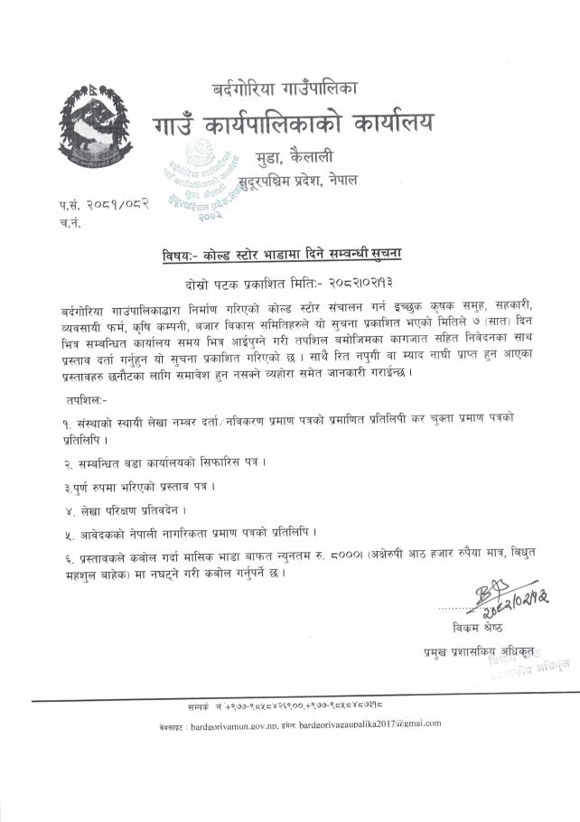 » कोल्ड स्टोर भाडामा दिने सम्बन्धी सूचना ।