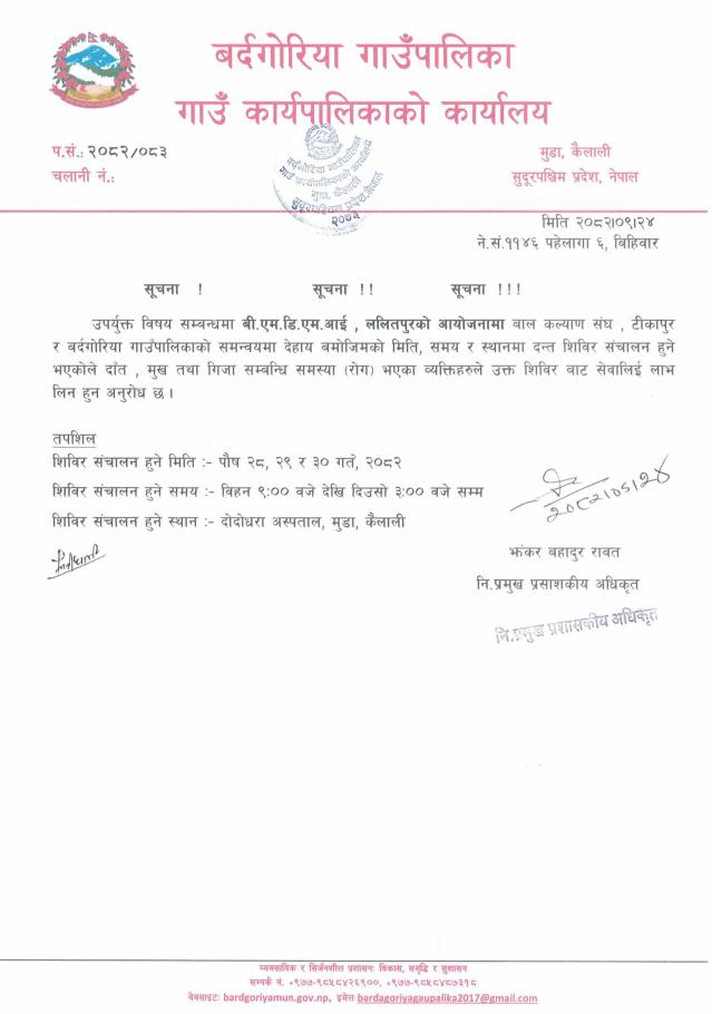 » दन्त शिविर संचालन हुने सम्बन्धी सूचना ।