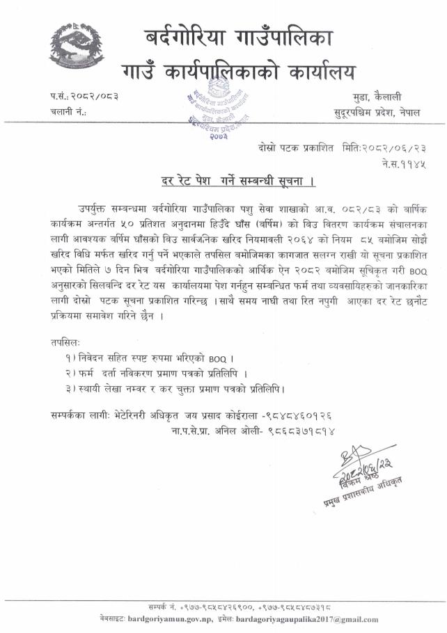 दर रेट पेश गर्ने सम्बन्धी सूचना।