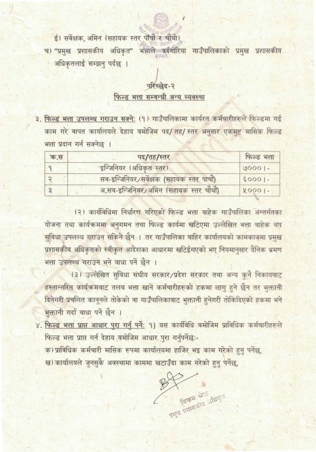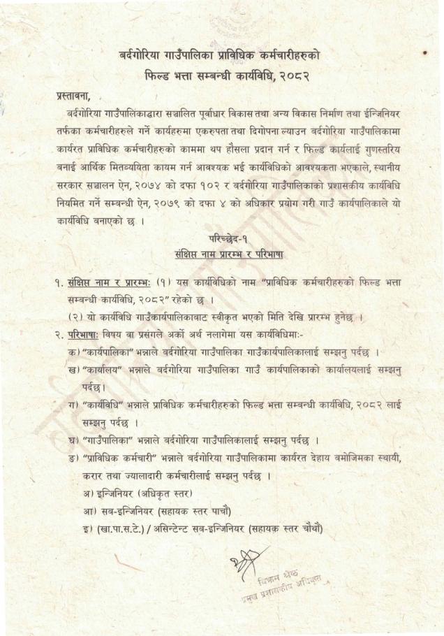 प्राविधिक कर्मचारीहरुको फिल्ड भत्ता सम्बन्धी कार्यविधि २०८२