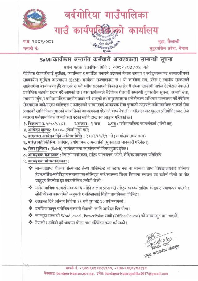 » SaMi कार्यक्रम अन्तर्गत कर्मचारी आवश्यकता सम्बन्धी सूचना।